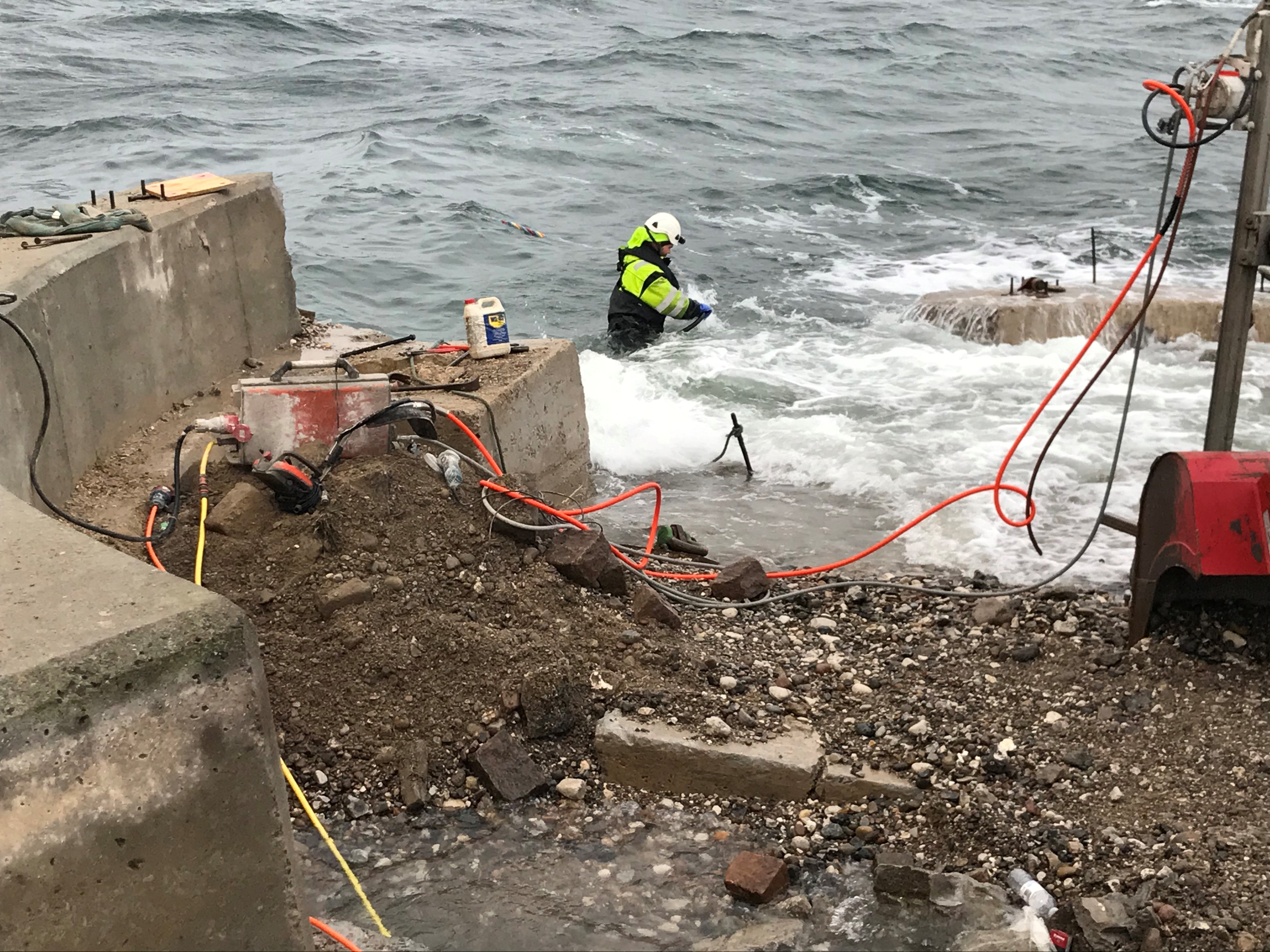 Wiresavs opgave på Kalvebod Brygge. En opgave under vand som krævede stor ekspertise med tilknyttede dykkere og kranførere. Udfordringen var et fundament, som skulle skæres. En svær opgave, hvor skæremanden skal samarbejde med en dykker under vand - og det svarer nærmest til at arbejde i blinde.